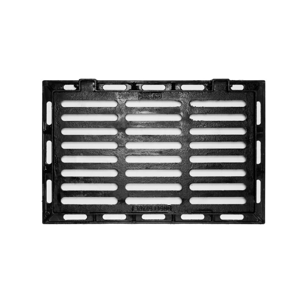 This product strictly complies with the GB/T23858 standard and is precision-cast using QT500-7 grade ductile iron. The 450mm × 750mm rectangular dimensions are optimized through fluid dynamics, achieving optimal structural stability while ensuring drainage efficiency. The reasonable 40mm thickness, combined with an internal three-dimensional reinforcement rib network, ensures load-bearing strength while controlling product weight. The surface features a deep anti-slip pattern design and is treated with hot-dip galvanizing, with a zinc layer thickness exceeding 80μm, ensuring long-term performance in humid environments. The unique grate assembly structural design facilitates easy installation and simple maintenance, significantly reducing the whole-life-cycle cost of use.